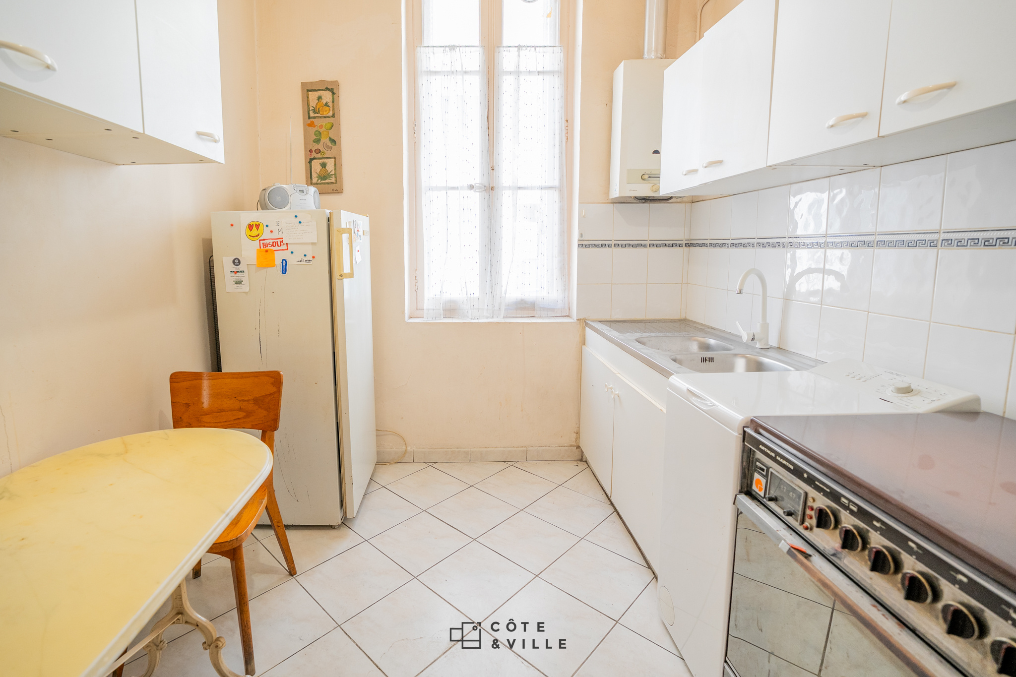 Appartement à rénover avec une belle hauteur sous plafond et un fort potentiel aprés travaux. Environnement calme avec accès à un jardin partagé.
