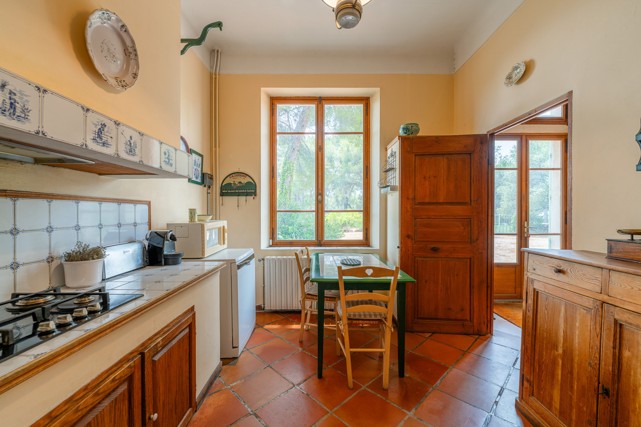 Véritable have de paix, cette bâtisse au coeur de la nature et à seulement 15 minutes du centre ville vous offre un cadre de vie hors du commun, au calme absolu dans un environnement apaisant au milieu de la garrigue. Ce bien unique en double distribution vous offre trois belles pièces de réception, une cuisine séparée, 4 chambres ainsi que deux salles de bain et un garage de type atelier.