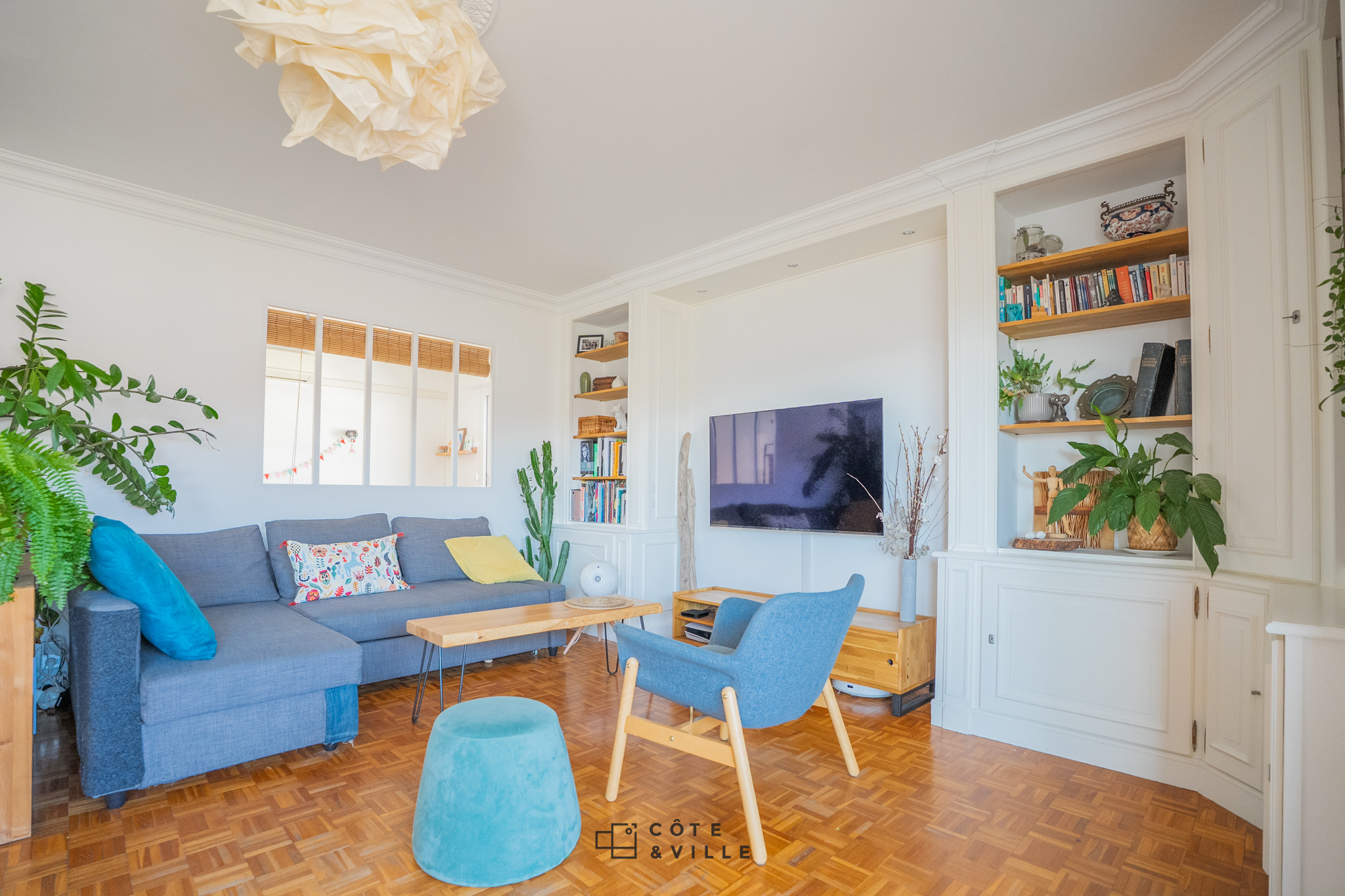 Au 7ème étage avec ascenseur, nous découvrons un appartement soigneusement décoré, en excellent état et dont l’espace est très bien optimisé.
