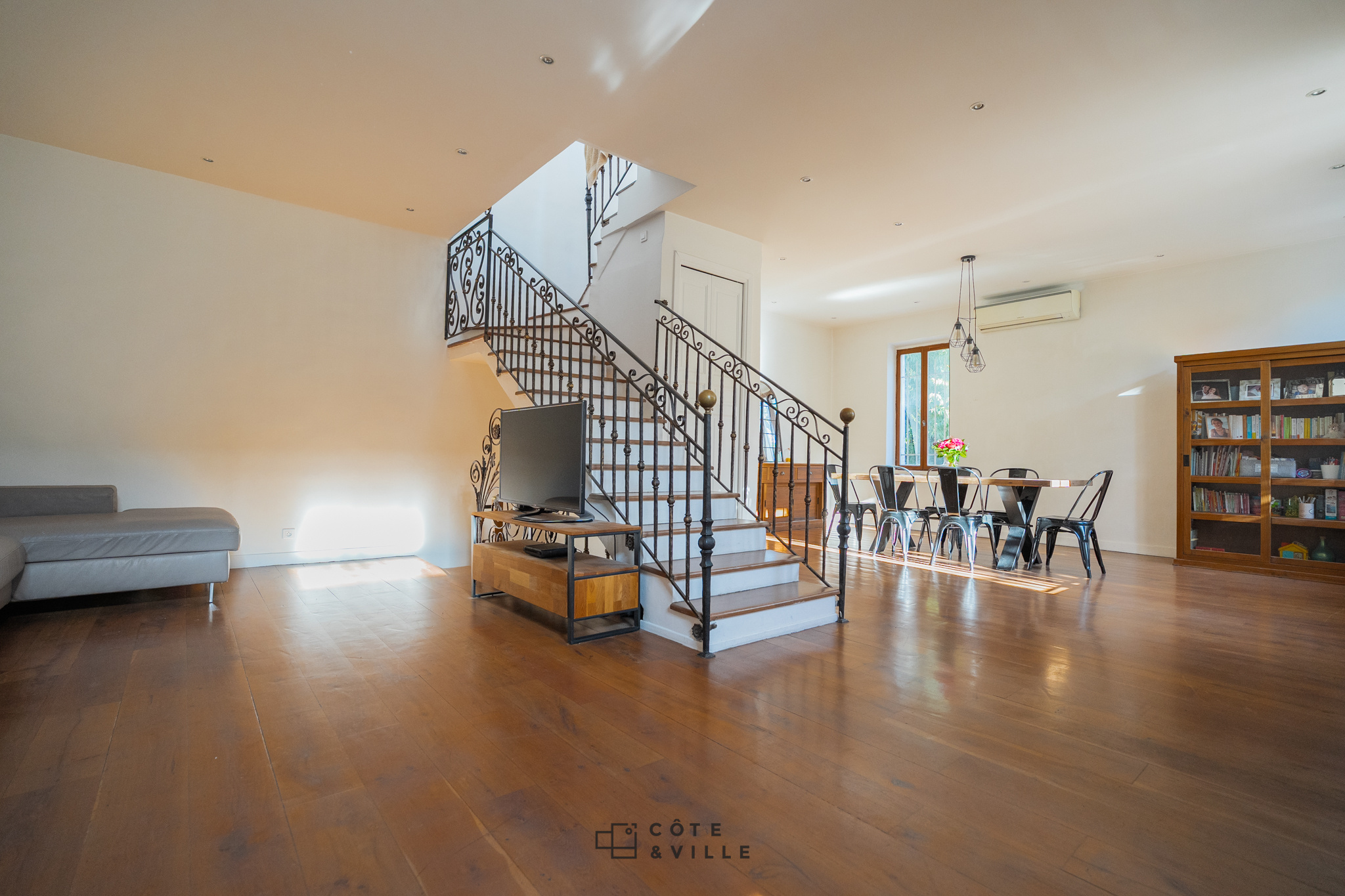 D’une superficie totale de 145m2 habitable avec 35m2 de terrasse exposée Sud-Est, elle se compose d’ un séjour de 65m2 lumineux, climatisé en réversible avec une très belle hauteur sous plafond, la cuisine est entièrement équipée et bénéficie d’un grand sous sol ( rangement – buanderie de 30m2 ) .