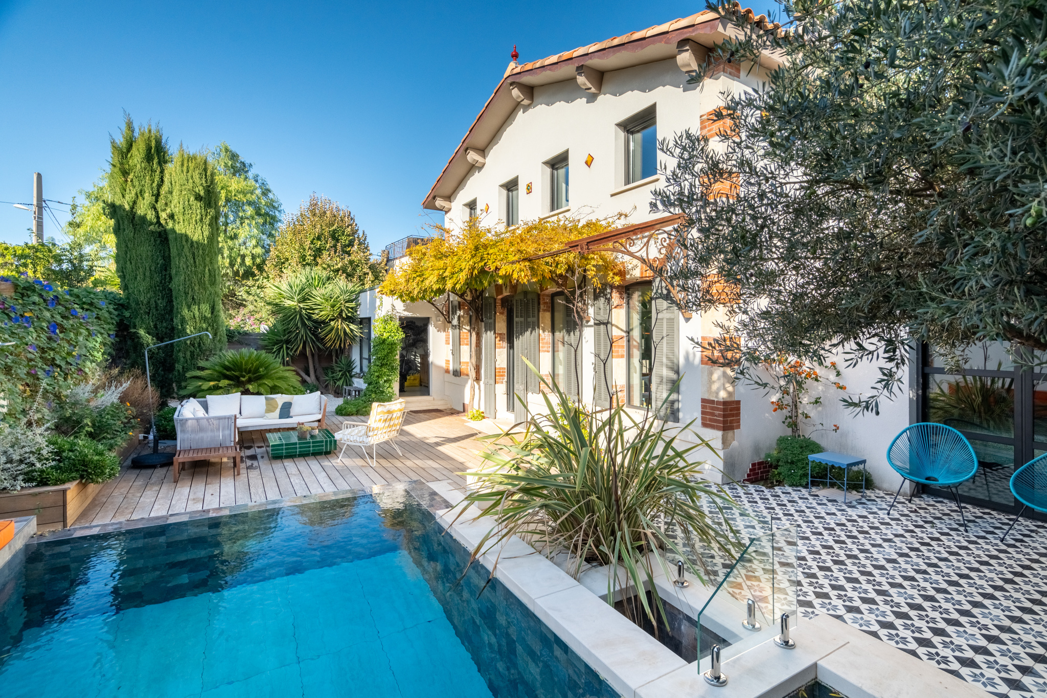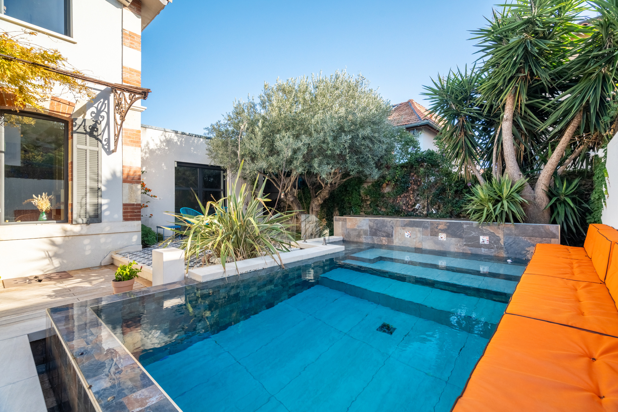 Cette charmante demeure familiale située dans le quartier prisé de Saint Barnabé dans le 12ème arrondissement de Marseille, offre une superficie de près de 220m2. La maison est individuelle et entièrement ouverte sur son jardin paysager et sa piscine design. Vous découvrirez des pièces avec de très beaux volumes dont une entrée, un espace de vie baigné de lumière aux finitions parfaites avec sa cuisine ouverte, 4 chambres avec chacune leur salle d’eau dont 2 de plain-pied ainsi qu’un bureau. Courbes délicates, intérieur soigné et détails contemporains sont de mise. Un sous-sol aménagé de 80m2 avec salle de cinéma, buanderie et cave à vin vient compléter ce bien de prestige. Il est possible de stationner une voiture dans la propriété.