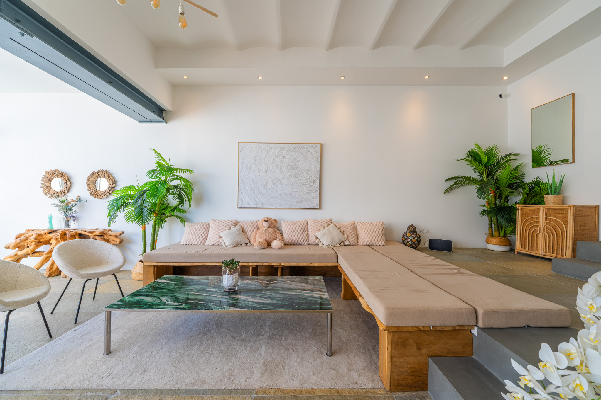 Ouverte sur la mer, cette villa vous séduira par sa pièce de vie de 66m2 sur une première terrasse. Dans l’espace nuit, 4 chambres et 4 salles de bain ainsi qu’une salle de sport ou bureau et un sauna.