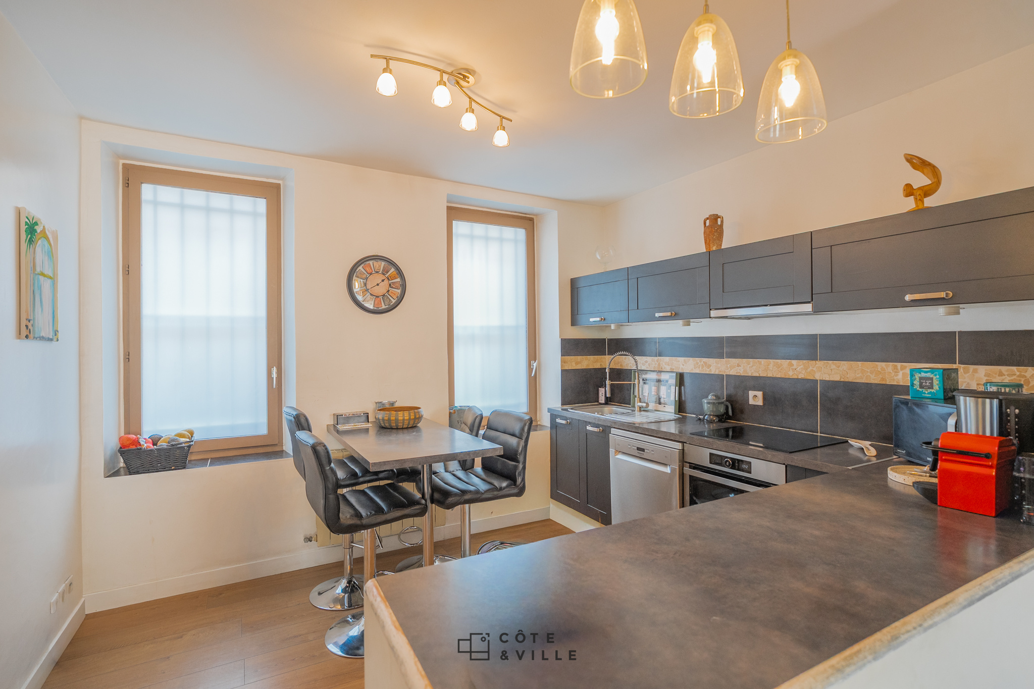 L’ensemble s’ouvre naturellement sur une superbe terrasse de 50 m2, véritable prolongement de la pièce de vie, intime et ensoleillée, idéale pour recevoir en toute convivialité.