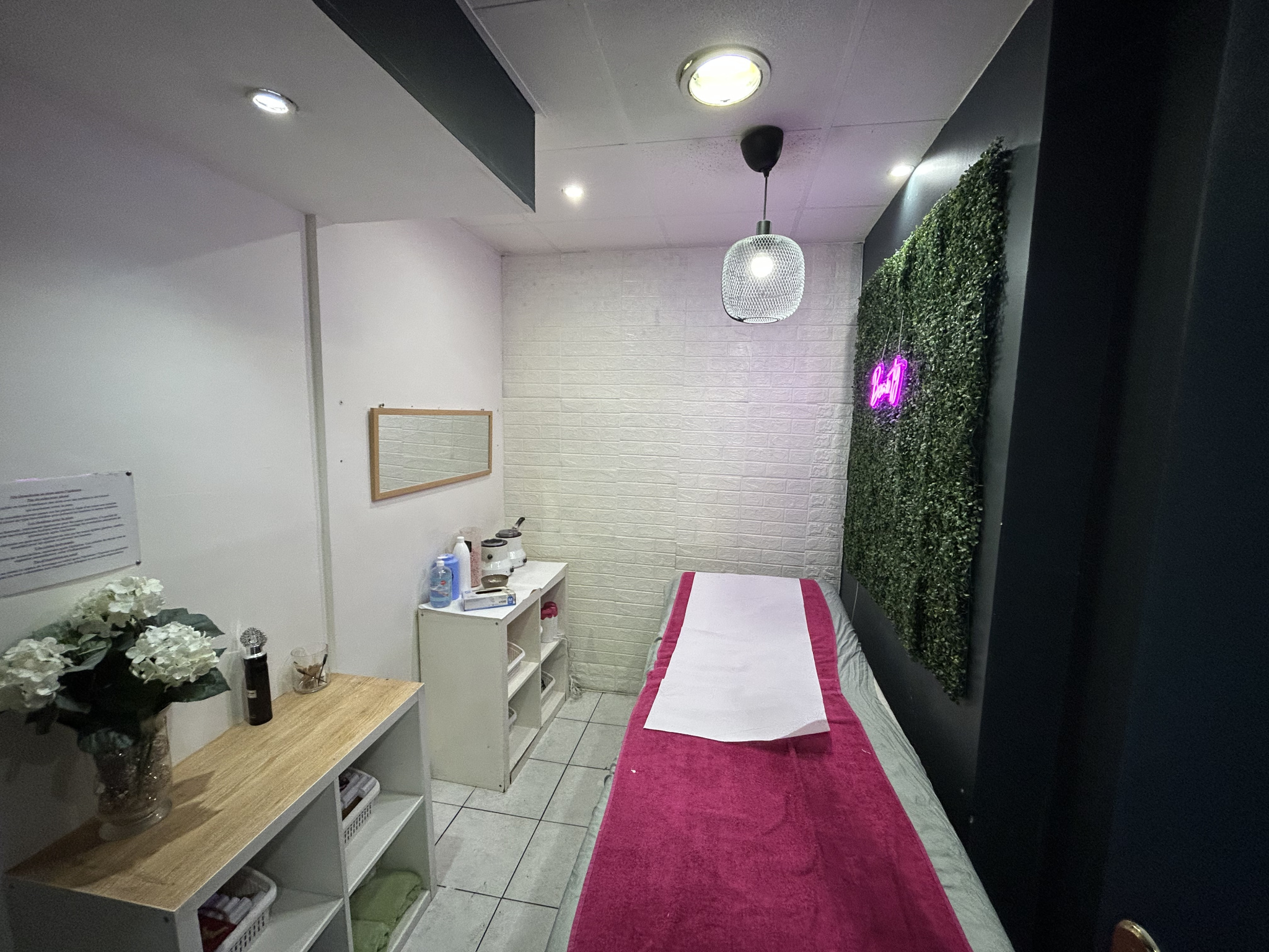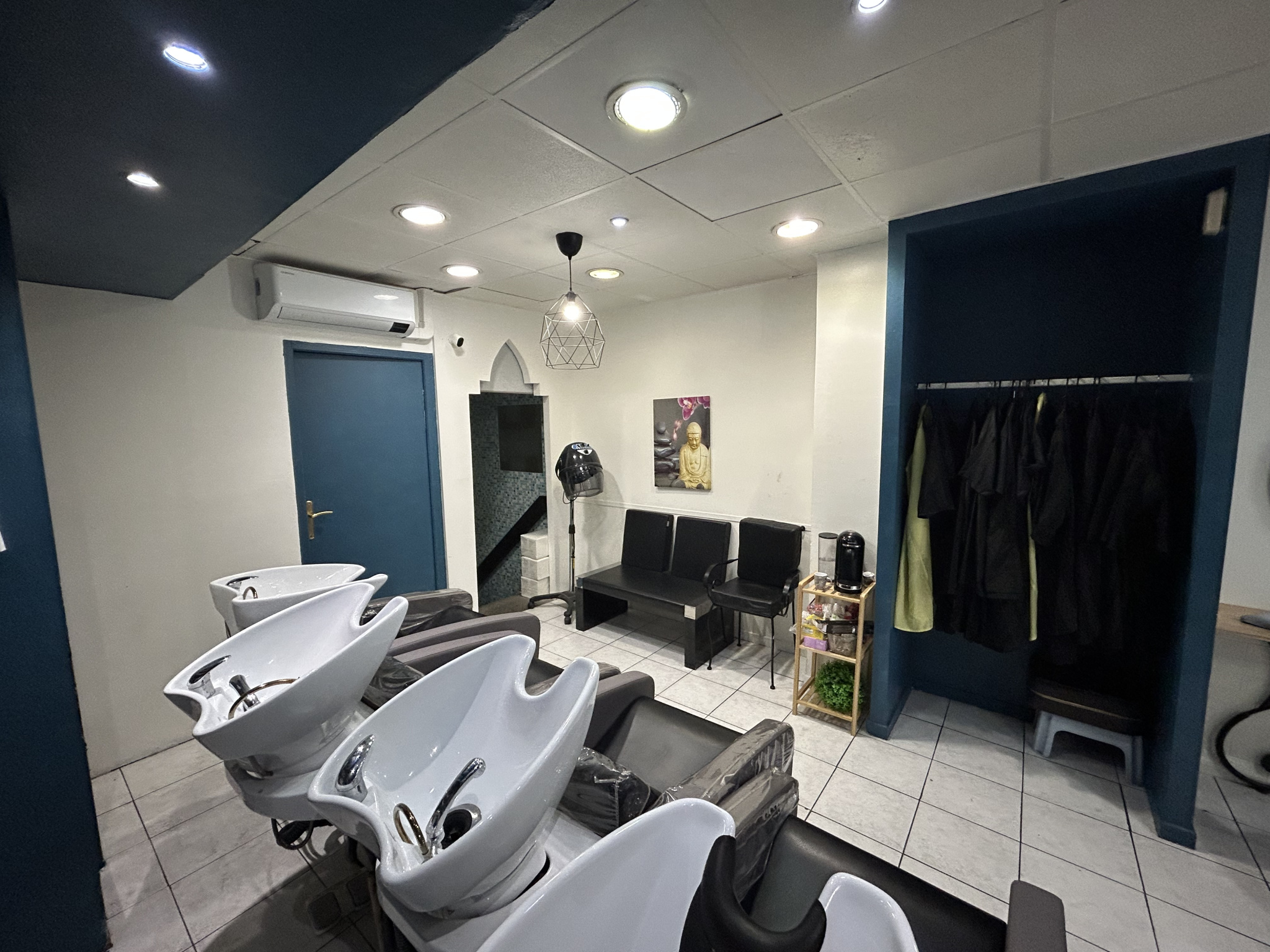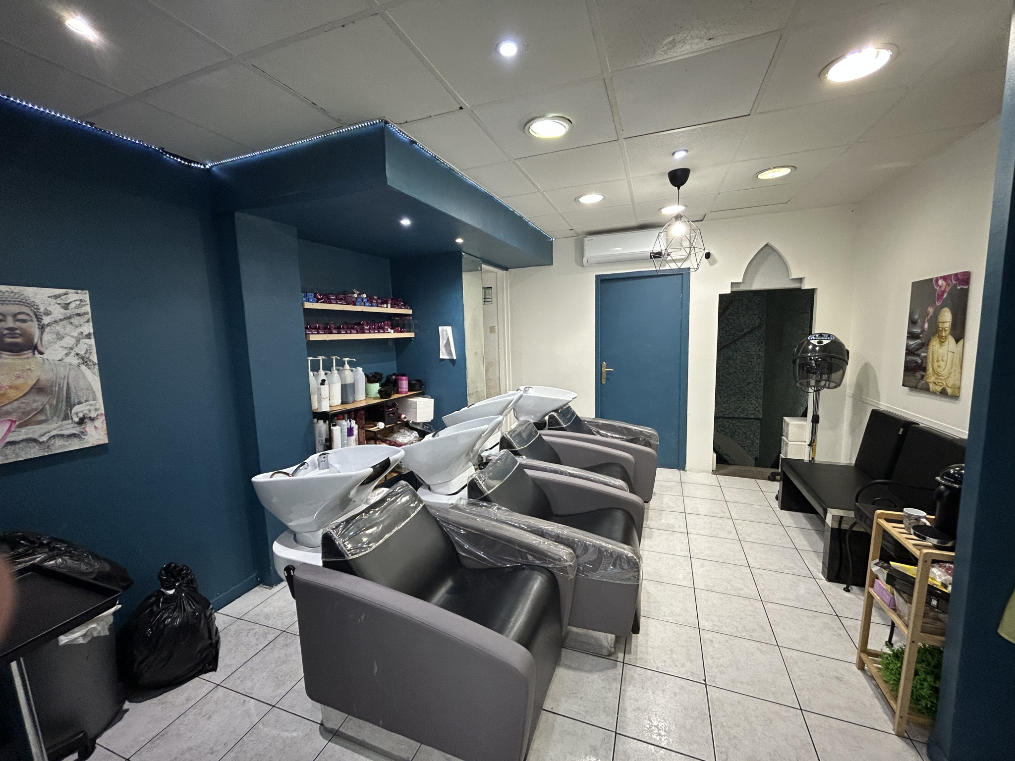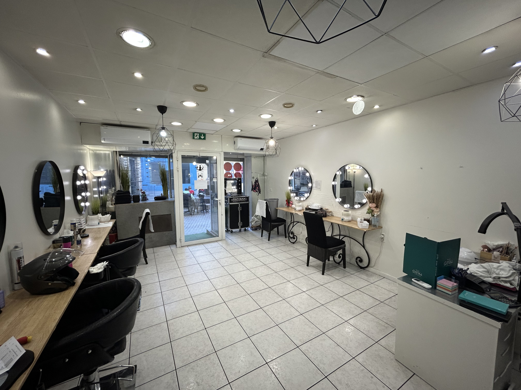 Organisé sur deux niveaux, vous trouverez au rez de chaussee un salon de coiffure et d’esthetique avec tout le materiel necessaire à cette activité, et au sous sol un hammam, pouvant encore fonctionner.
