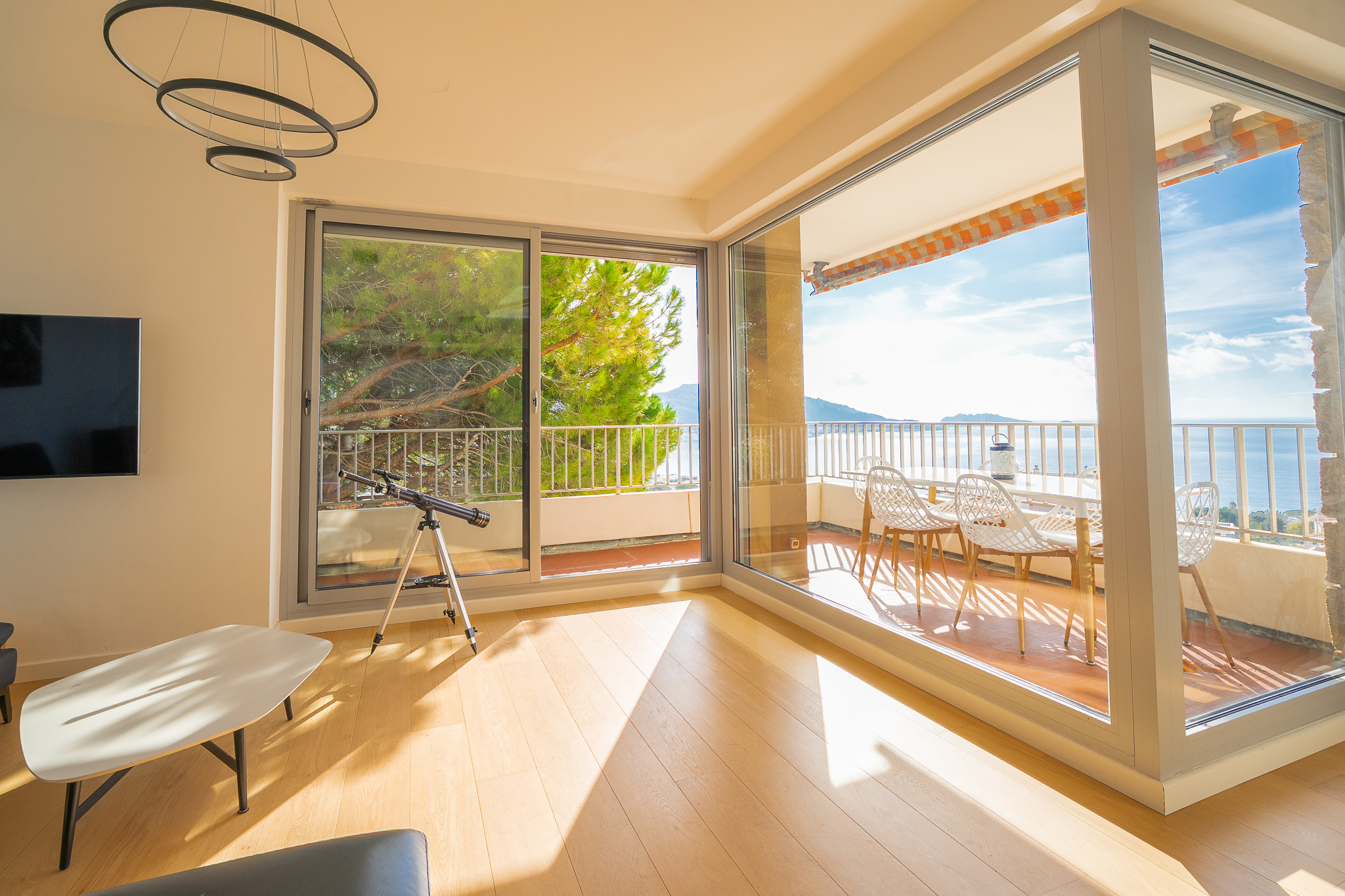 La terrasse, véritable pièce à vivre supplémentaire, offre une immersion totale dans un panorama unique : la Méditerranée à perte de vue .